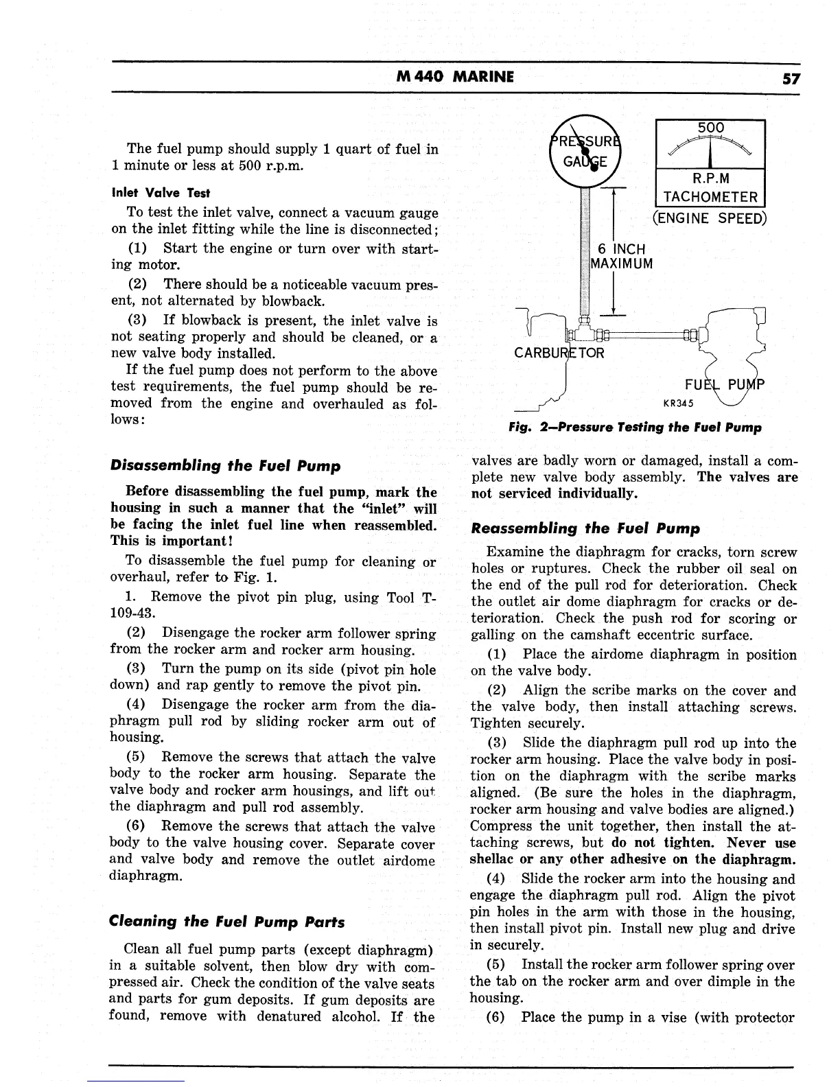 Chrysler M440 - Disassembling the Fuel Pump; Cleaning the Fuel Pump Parts; Reassembling the Fuel Pump