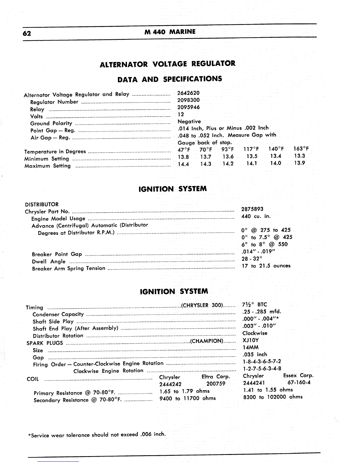 Chrysler M440 - Alternator Voltage Regulator Data and Specifications