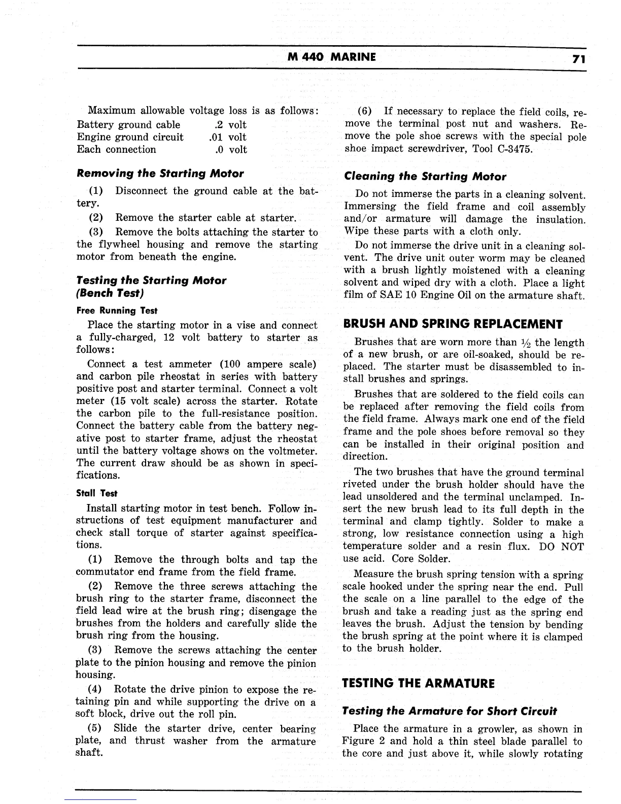 Chrysler M440 - Brush and Spring Replacement; Testing the Armature; Removing the Starting Motor; Testing the Starting Motor