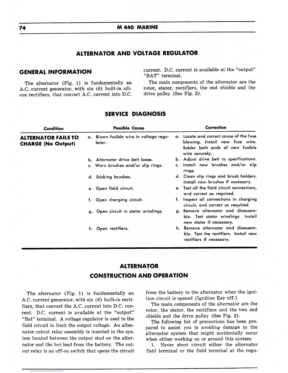 Chrysler M440 - Alternator and Voltage Regulator; Construction and Operation