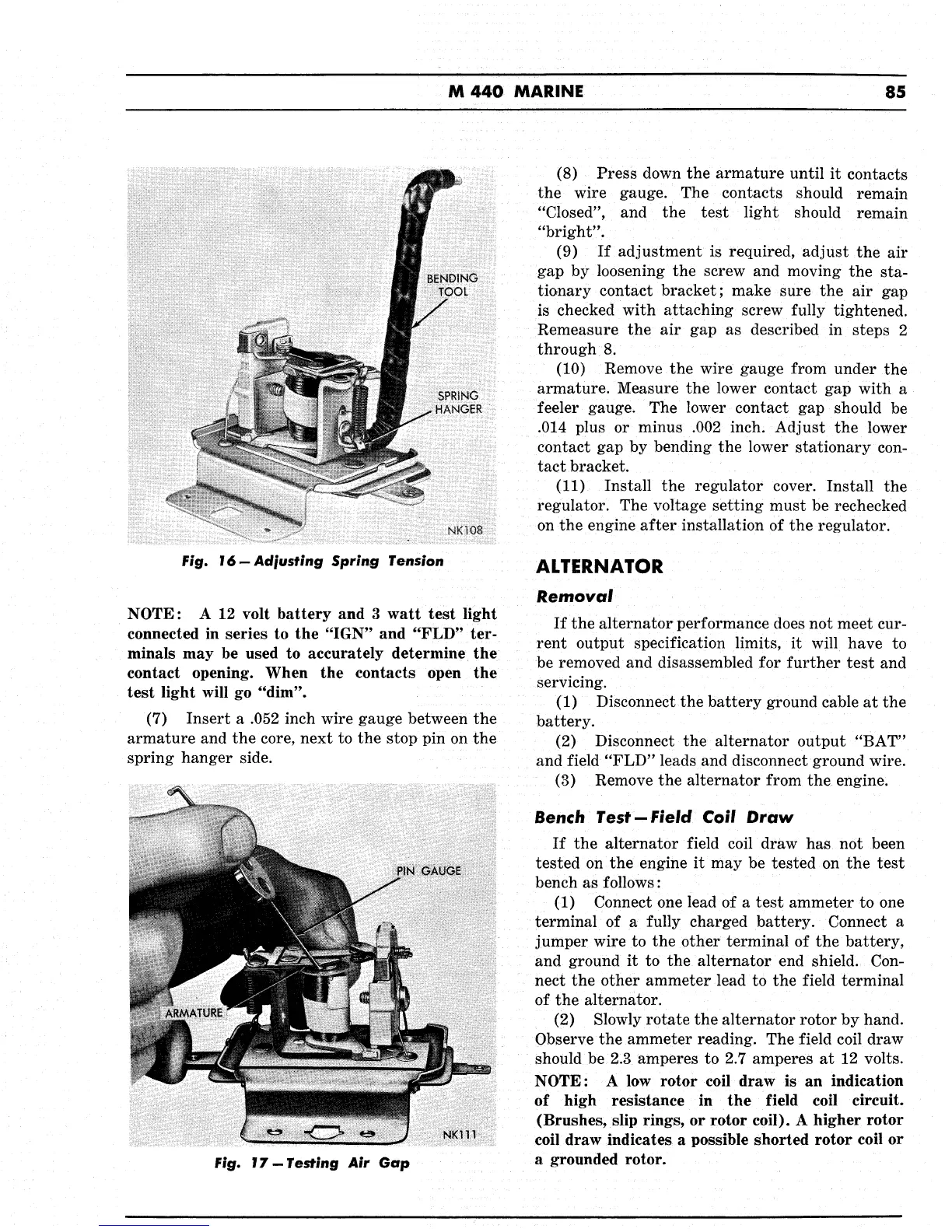 Chrysler M440 - Alternator Removal; Alternator Bench Test - Field Coil Draw; Testing Air Gap