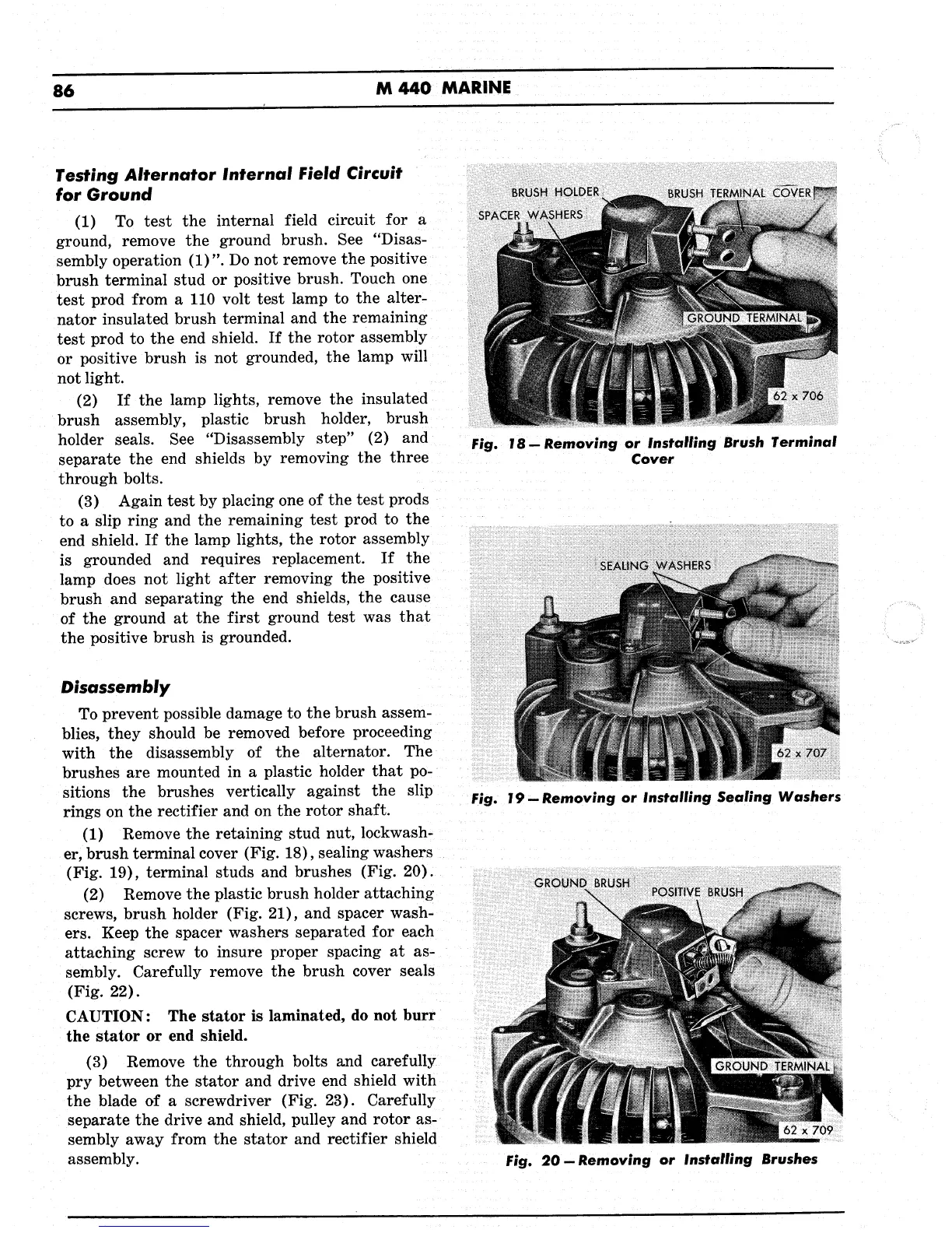 Chrysler M440 - Testing Alternator Internal Field Circuit for Ground; Removing or Installing Brush Terminal Cover; Removing or Installing Sealing Washers; Removing or Installing Brushes