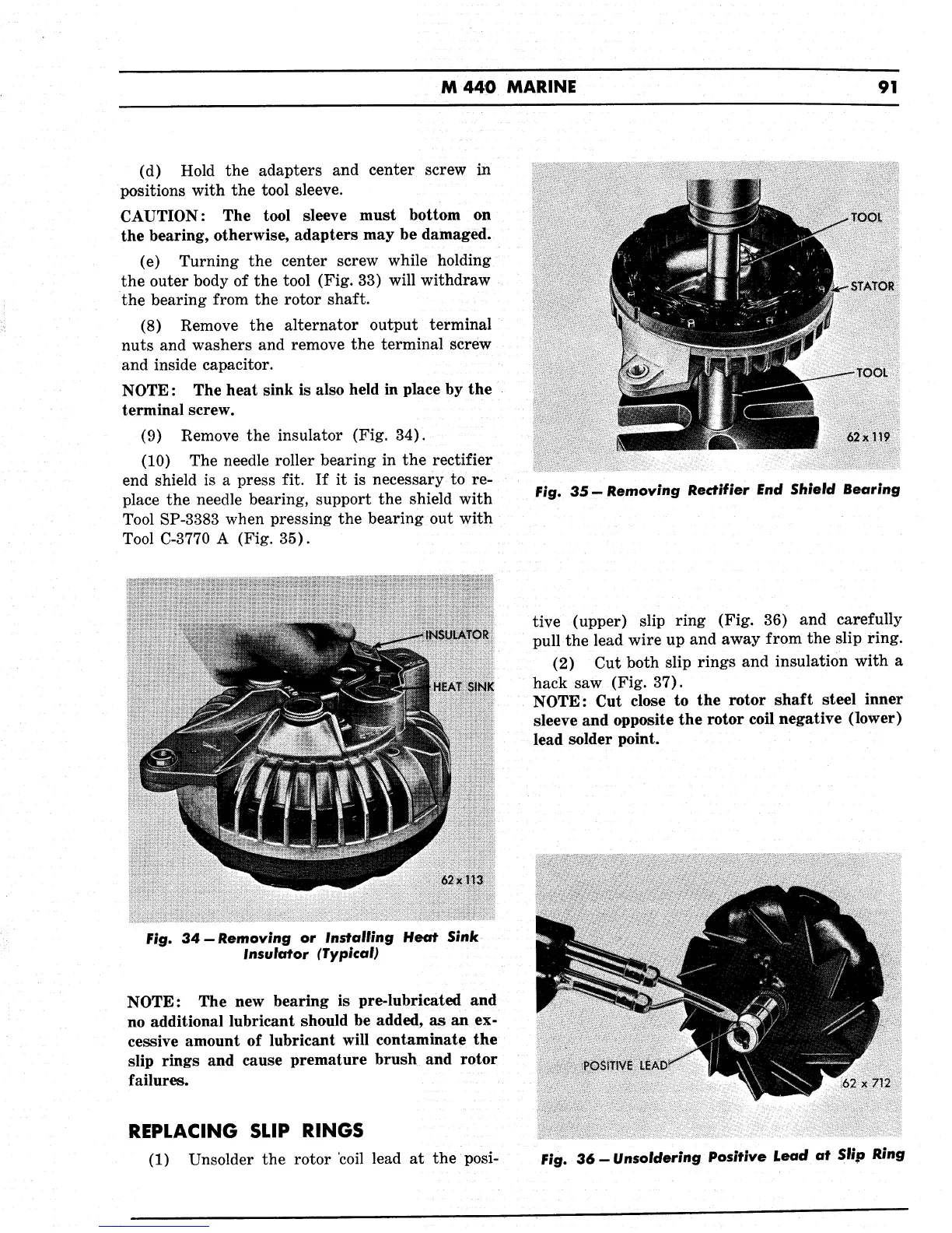 Chrysler M440 - Replacing Slip Rings; Removing or Installing Heat Sink Insulator; Removing Rectifier End Shield Bearing; Unsoldering Positive Lead at Slip Ring