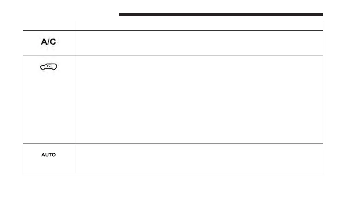 Press and release to change the current setting, the indicator illuminates when A/C is ON.