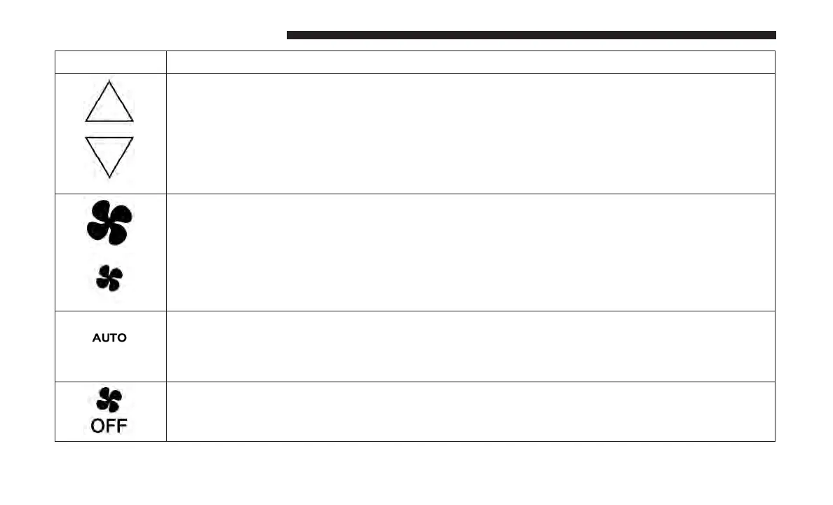 in the rear of the vehicle. The larger of the two icons increases blower speed, whereas the smaller