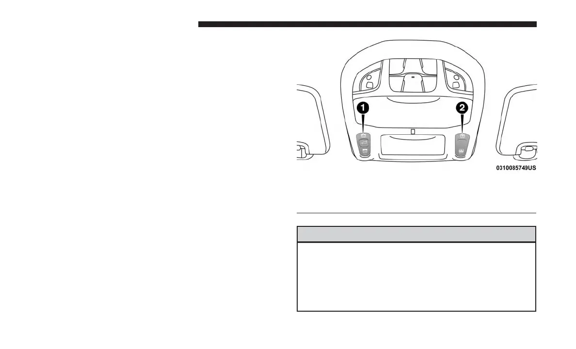 The Tri-Pane Panoramic Sunroof switch is located to the