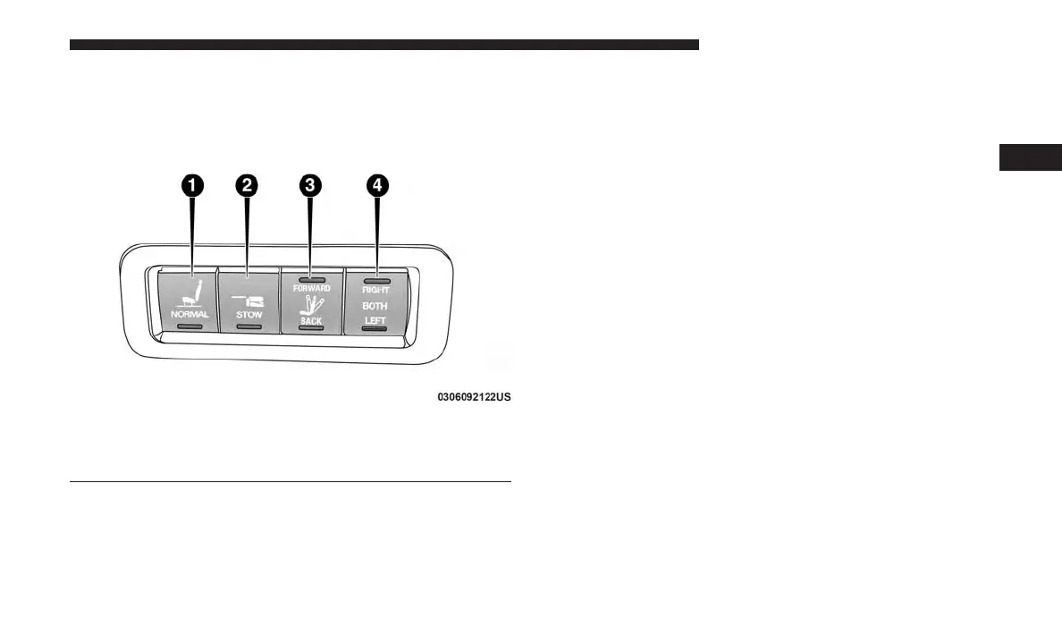 2 — Stow 4 — Right/Left Seats/Both Seats