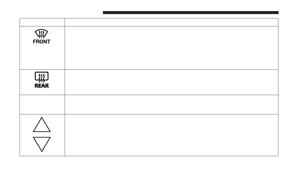 Press and release to change the current airflow setting to Defrost mode. The indicator illumi-