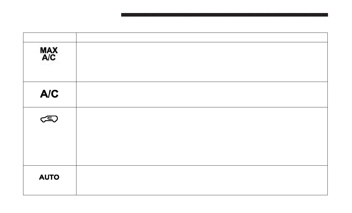 Press and release to change the current setting, the indicator illuminates when MAX A/C is ON.