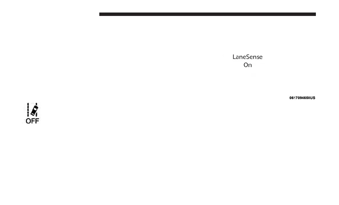NOTE: The LaneSense system will retain the last system