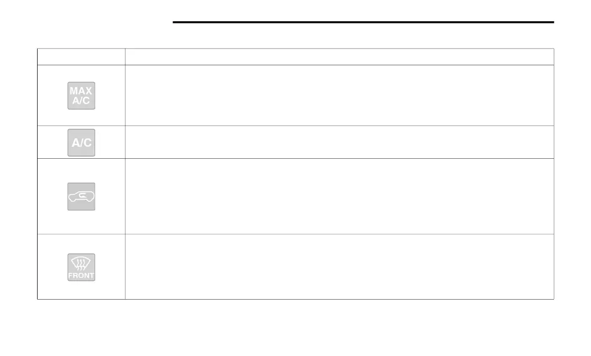 Press and release to change the current setting, the indicator illuminates when MAX A/C is on. Performing this function