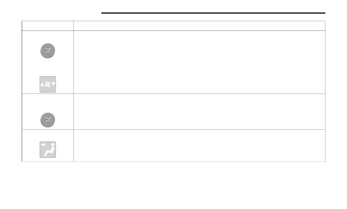 Touchscreen: Select Mode by pressing one of the Mode Buttons on the touchscreen. The airflow distribution mode can