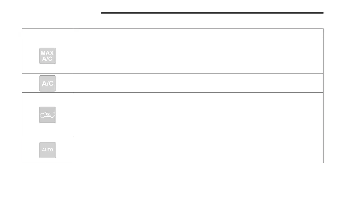 Press and release to change the current setting, the indicator illuminates when MAX A/C is on. Performing this function