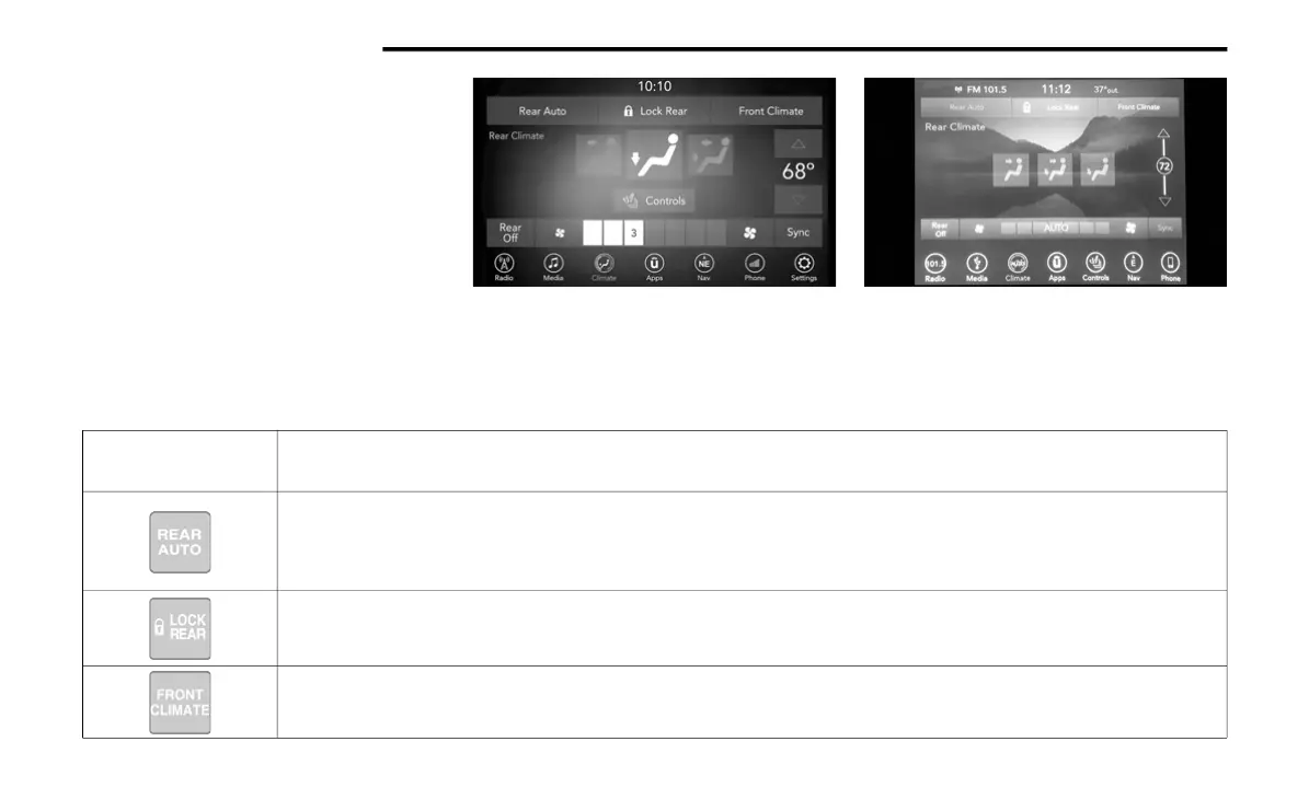 Uconnect 4 Front ATC Panel Rear Control Display Uconnect 4C/4C NAV Front ATC Panel Rear Control