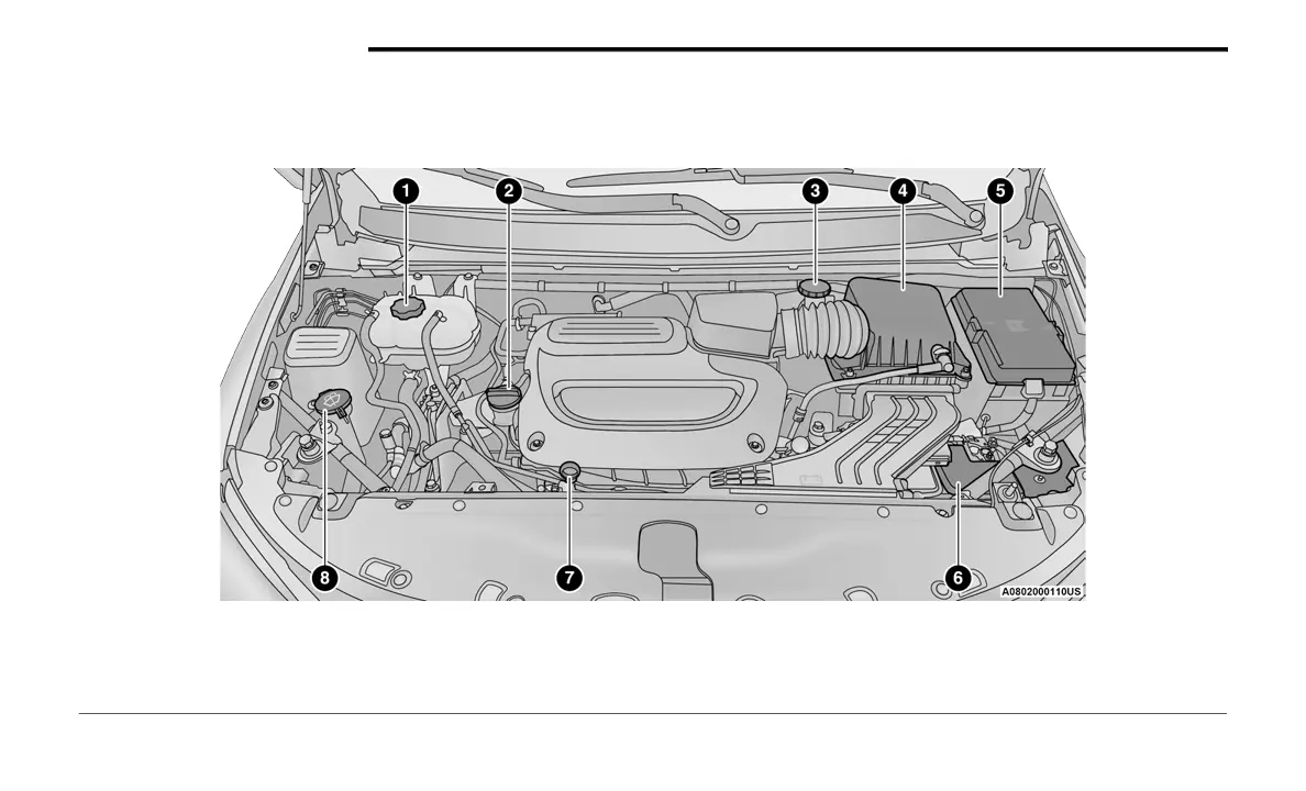 4 — Engine Air Cleaner Filter 8 — Windshield Washer Reservoir Cap