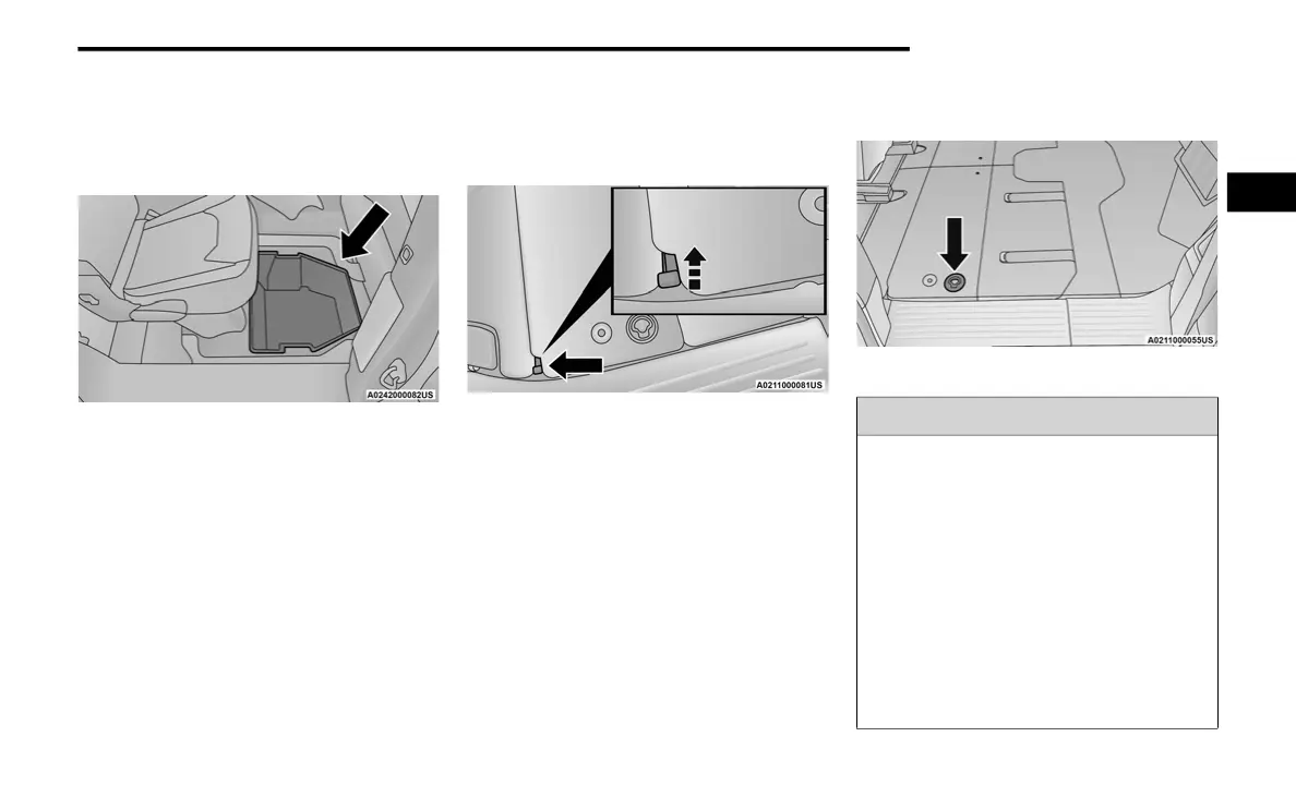 1. To access the storage bins with front seats