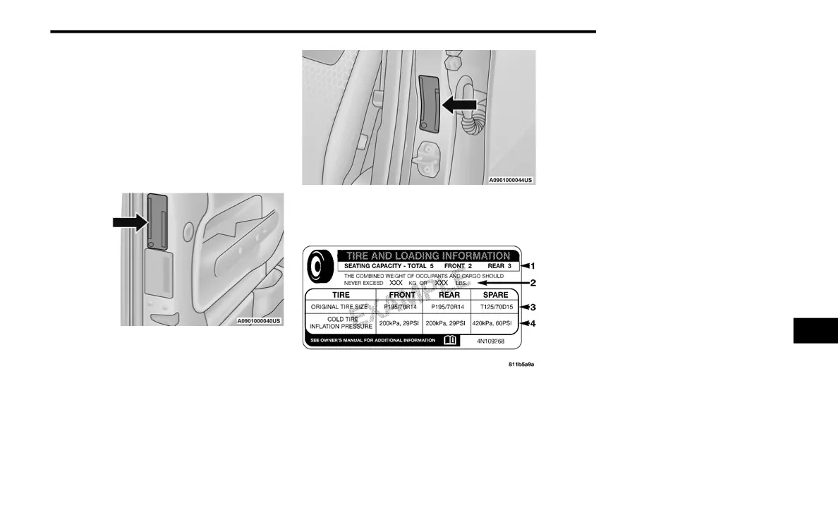 4. Cold tire inflation pressures for the front, rear,