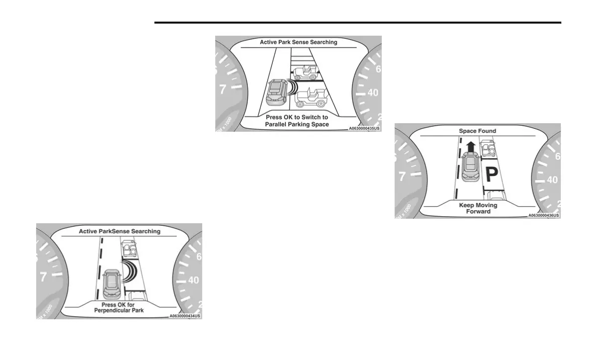 Perpendicular Park” or “Active ParkSense Searching -