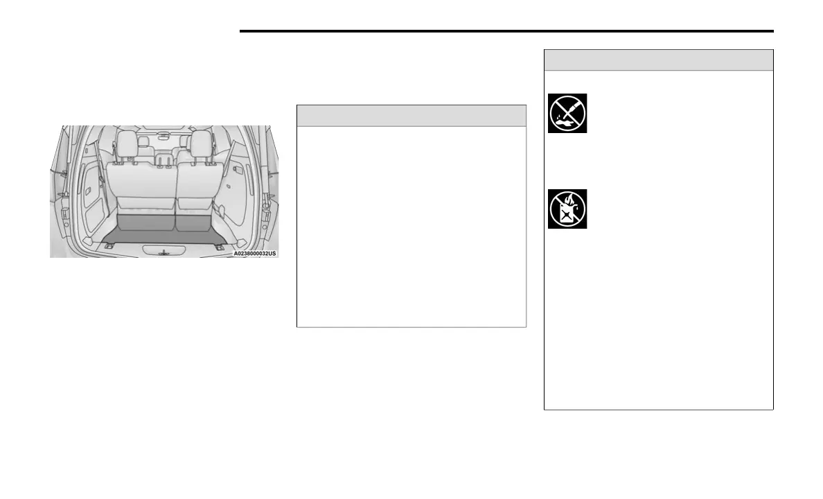 With all rear seats stowed or removed, 4 x 8 ft (1.2 x