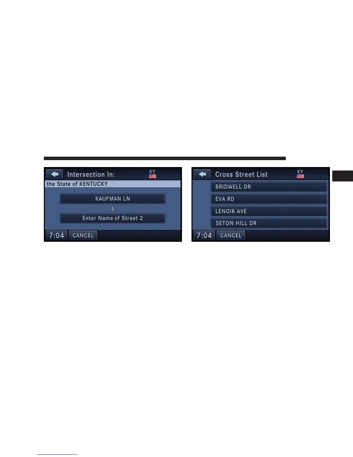 5. Touch the Enter Name of Street 2 soft-key to enter the