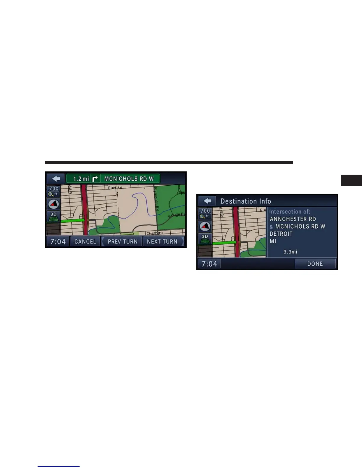 the NEXT TURN soft-key to show a map of the area close