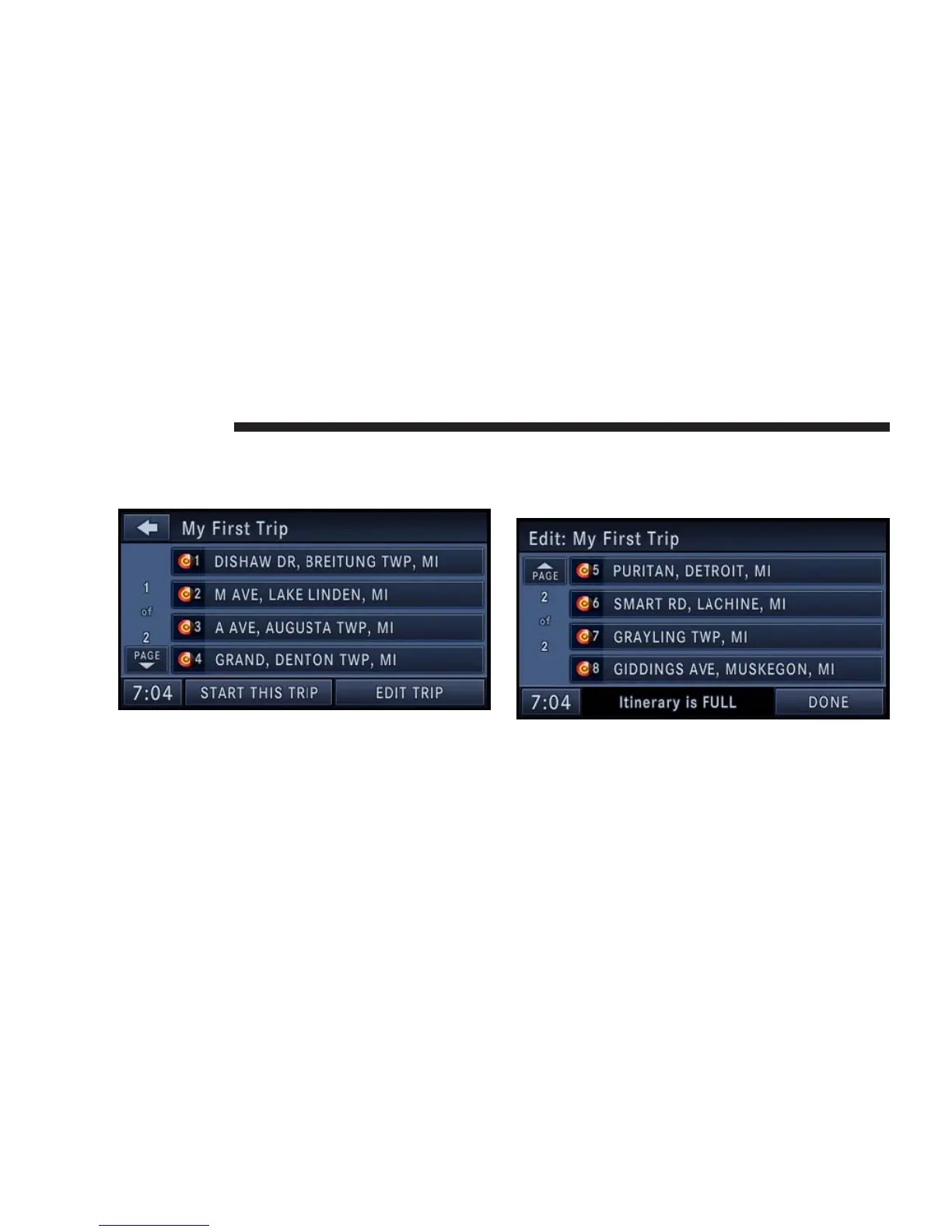 information, or touch the START THIS TRIP soft-key to