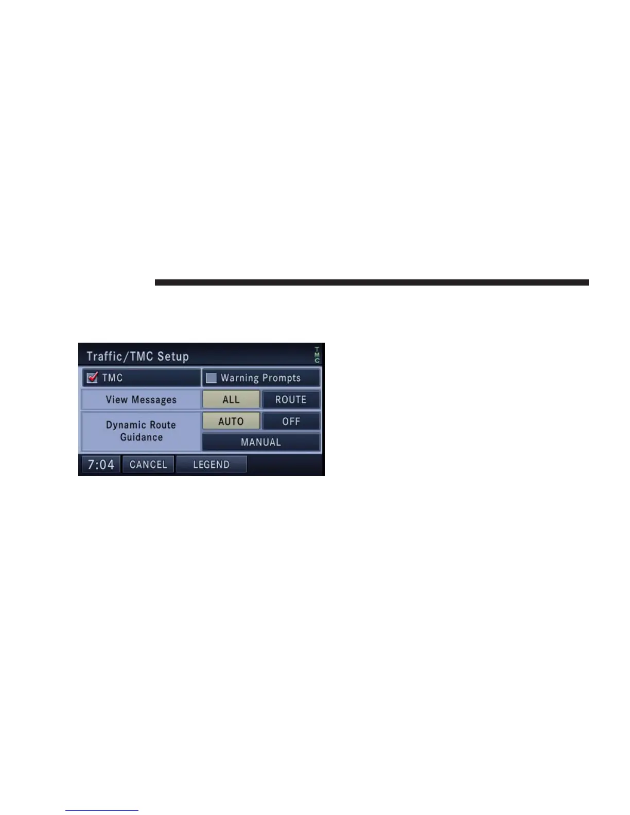 Touch the TMC soft-key to switch TMC on or off. Touch