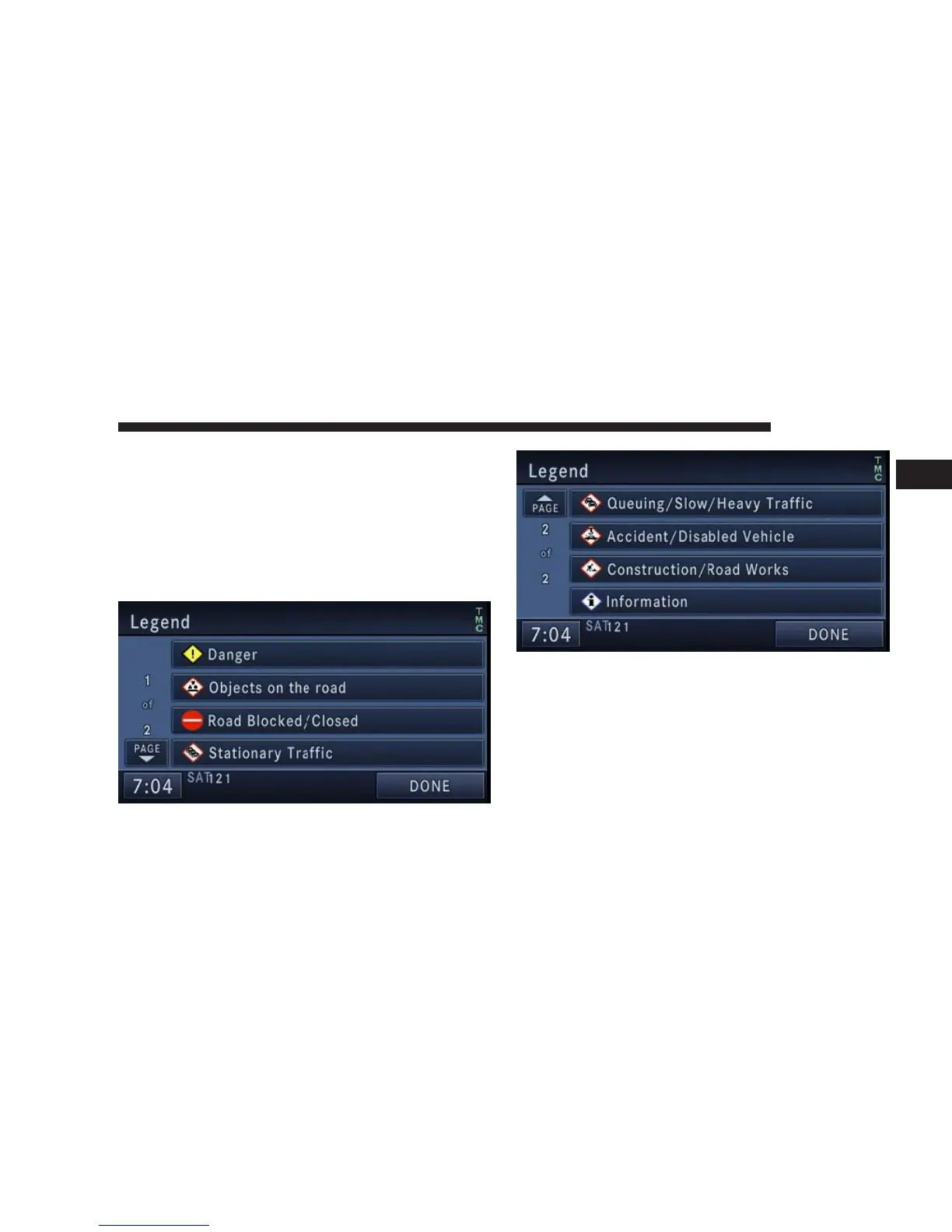 Touch the LEGEND soft-key in the Traffic/TMC Setup