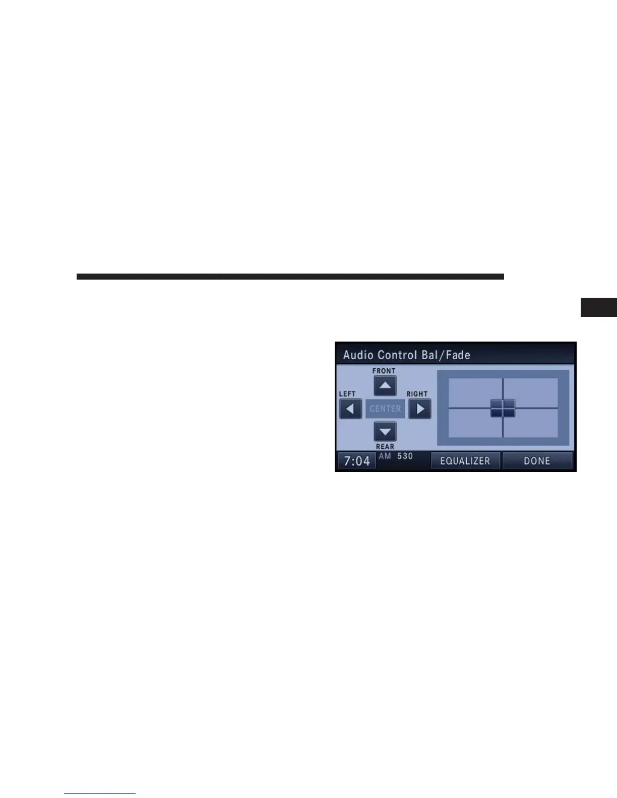 screen to change Balance and Fade. The CENTER soft-