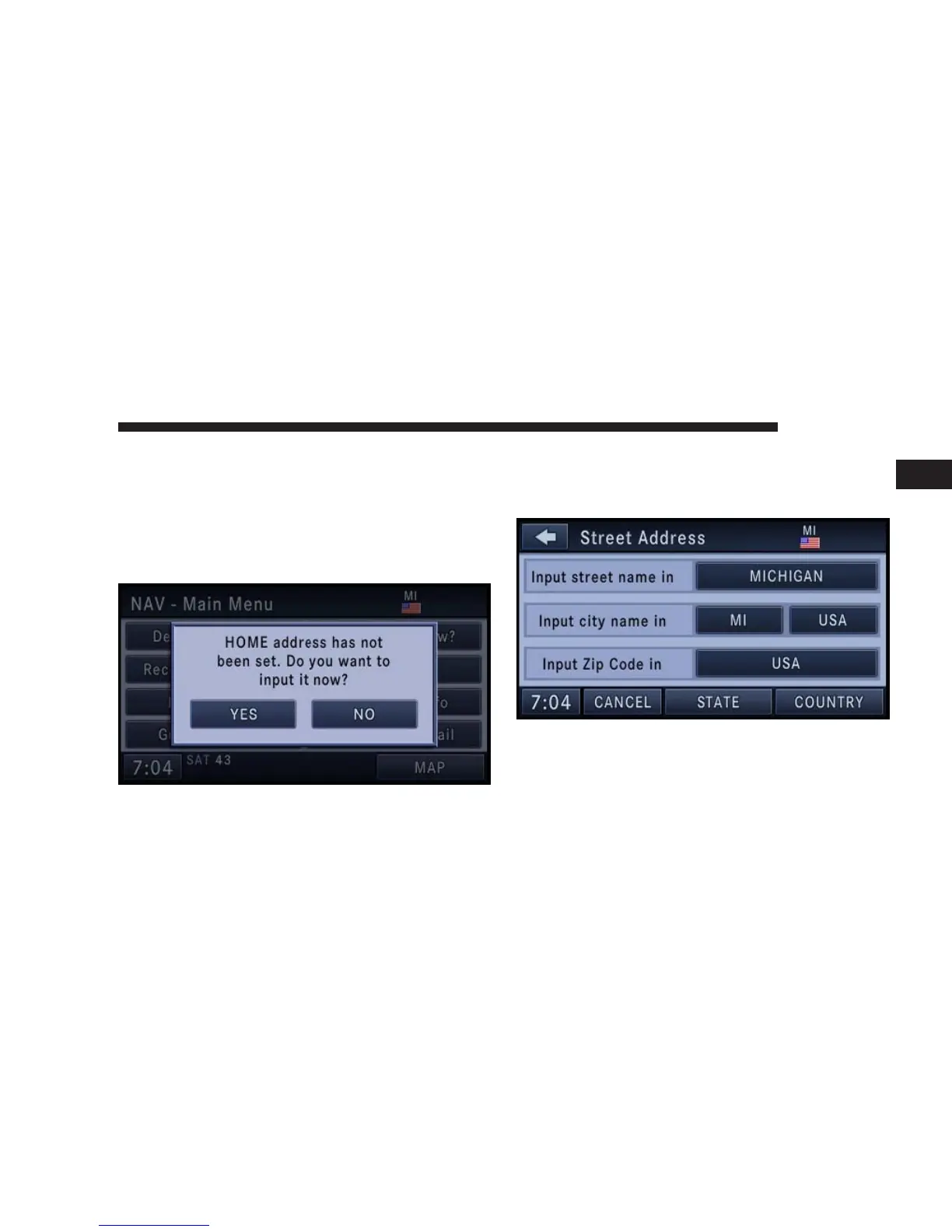 If no home address has been set, touch YES to access the