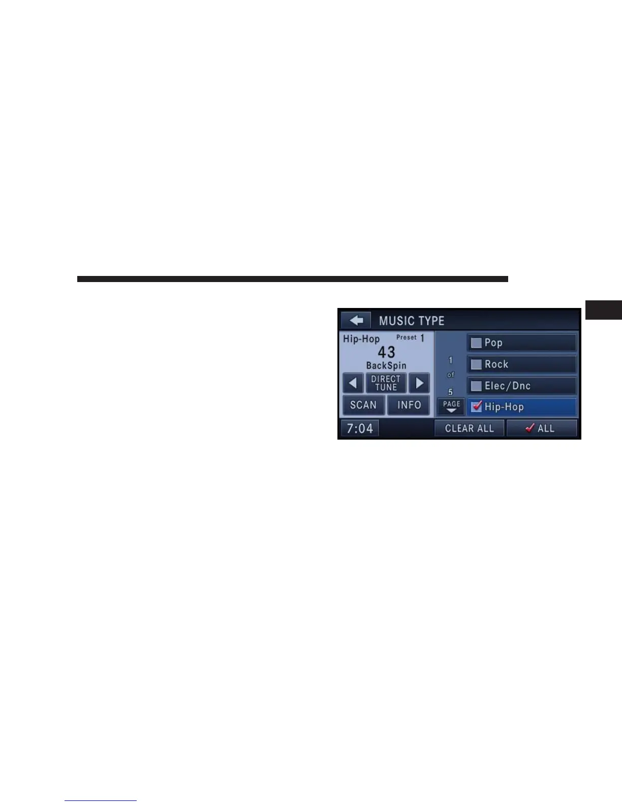 Select MUSIC TYPE to enable and/or disable desired