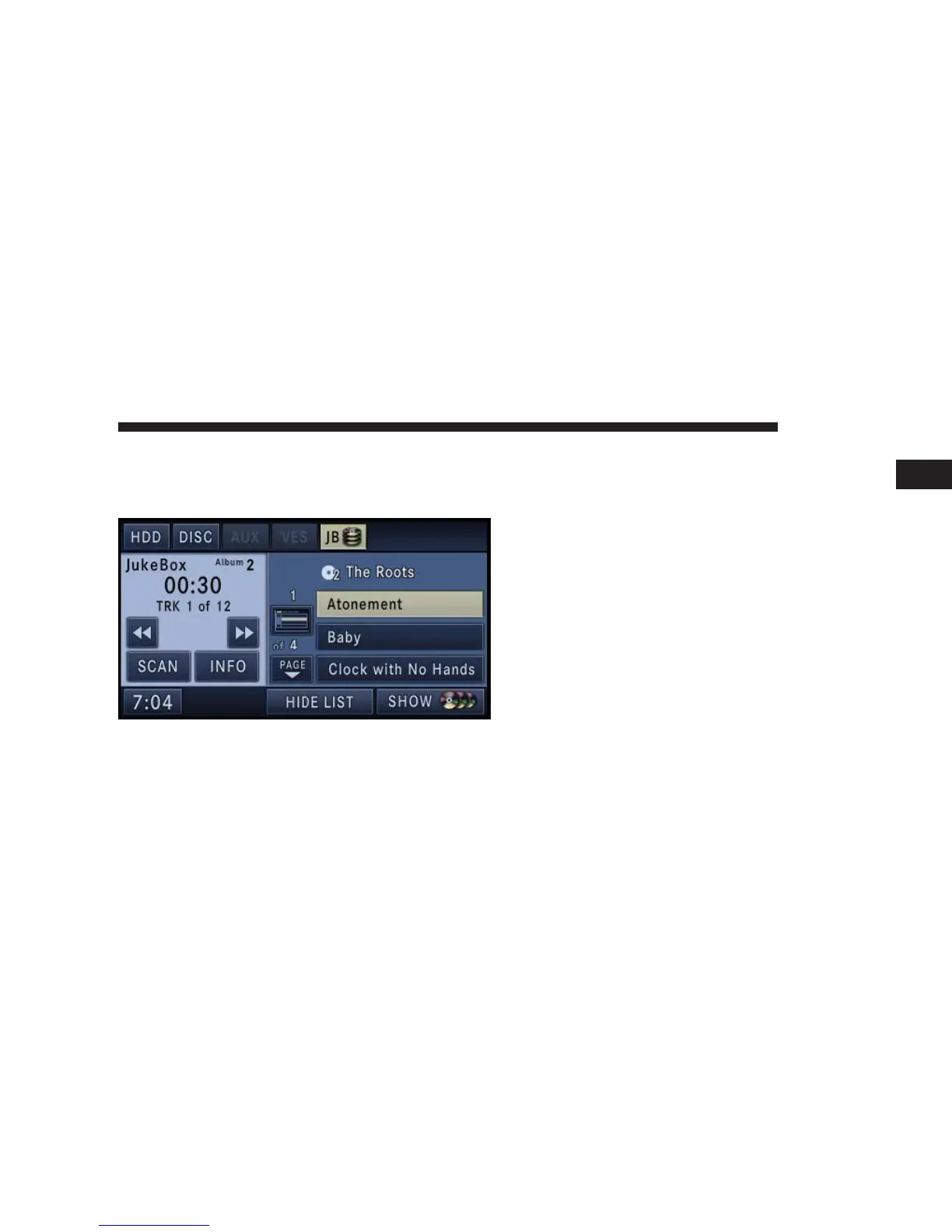 Touch the HIDE DISC soft-key to hide the album list.