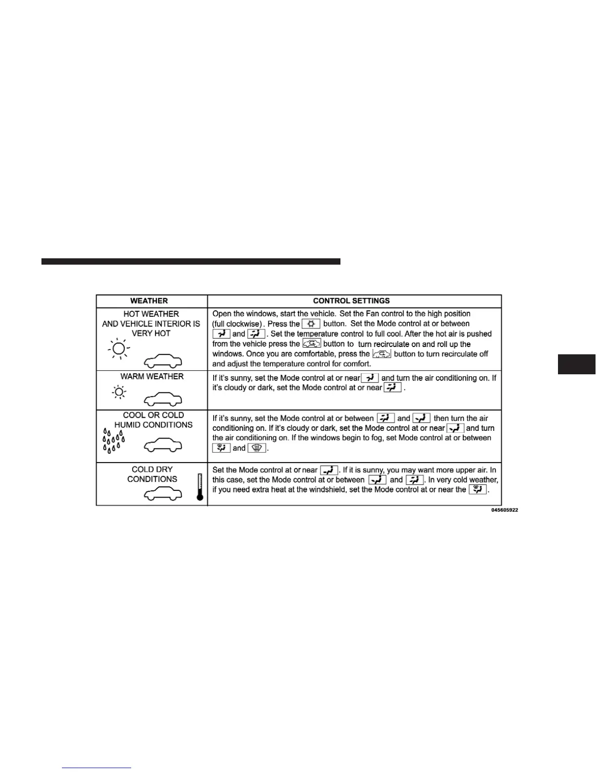 Control Setting Suggestions for Various Weather Conditions