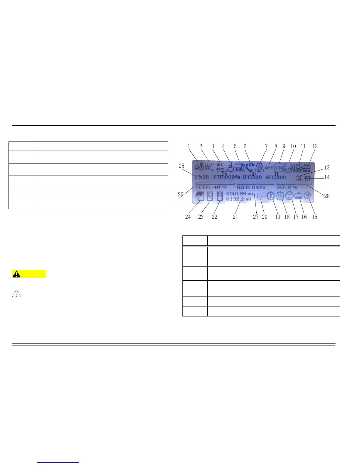 Table 1: Instrument Panel Face