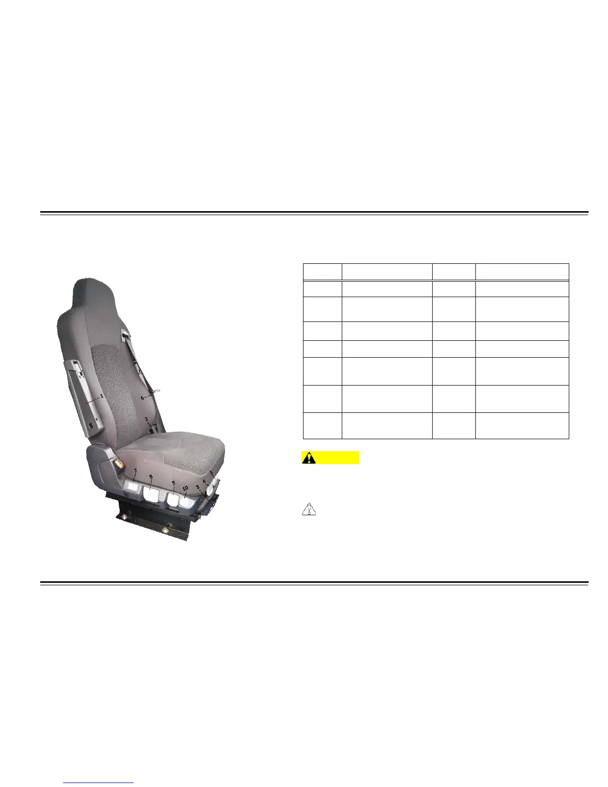 Do not adjust the driver’s seat while the motor coach is moving.