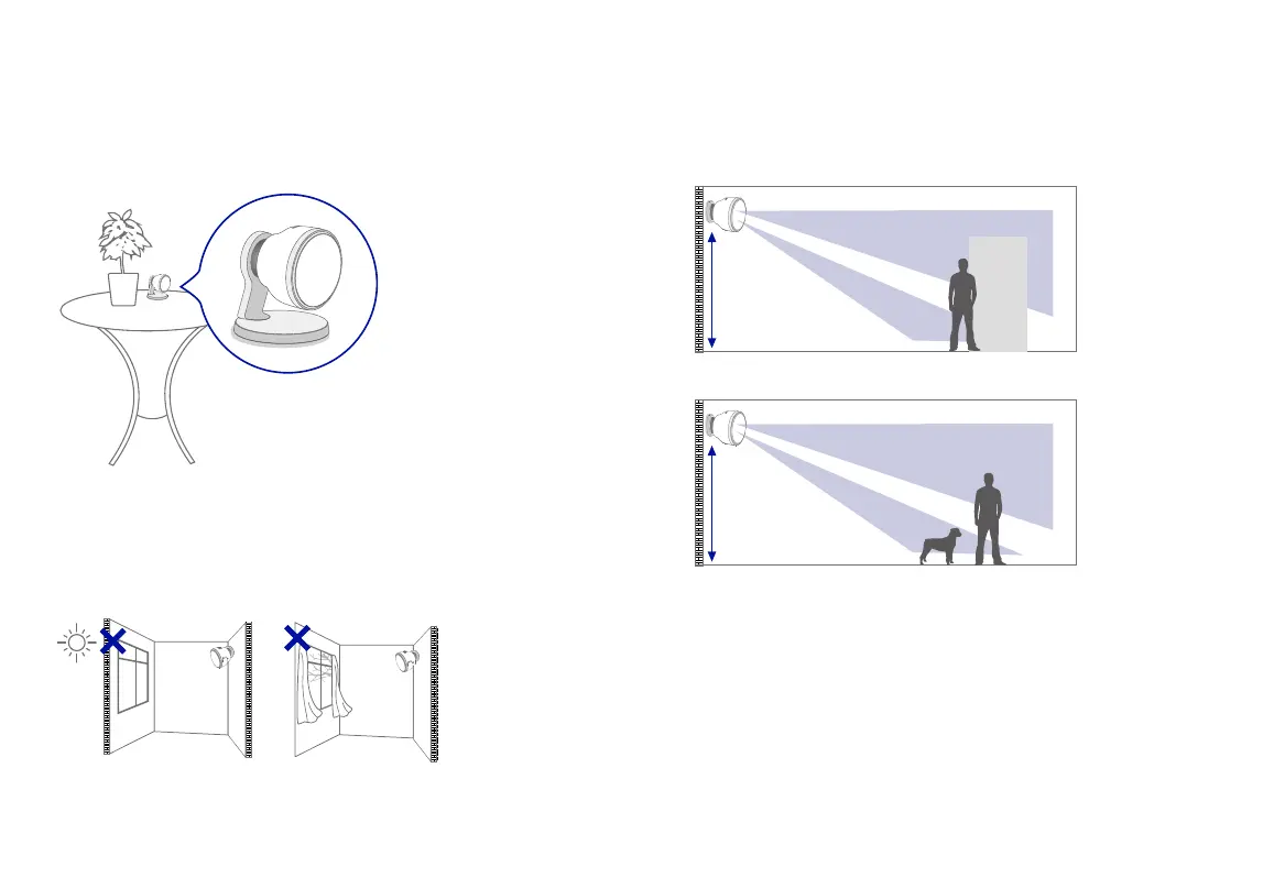 • Avoid direct sources of heat or sunshine, swinging objects like curtains.