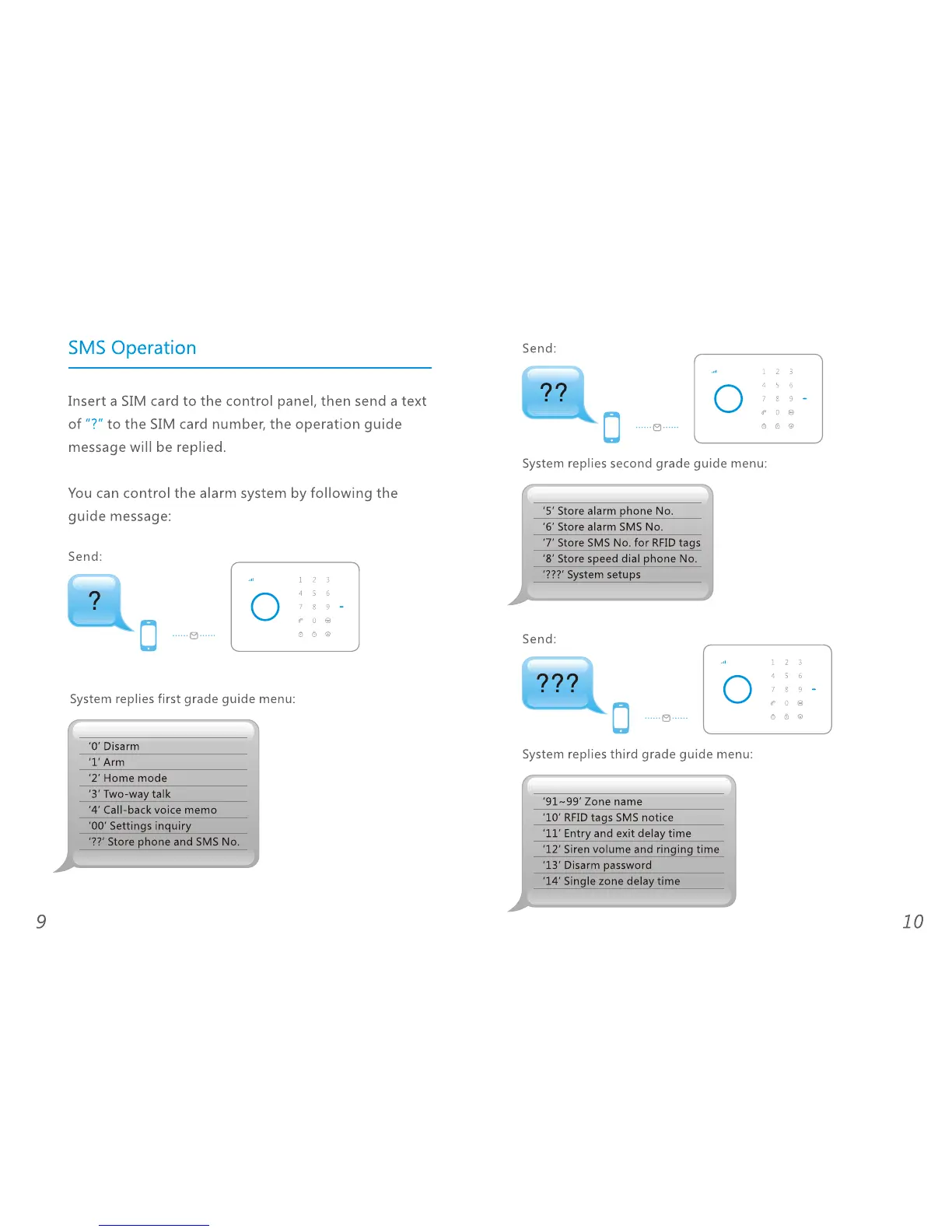 Chuango G5 - Turning on the control panel; Settings inquiry by SMS