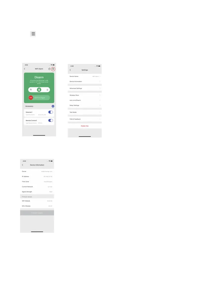 Tap [ ] button to enter into hub setting page.