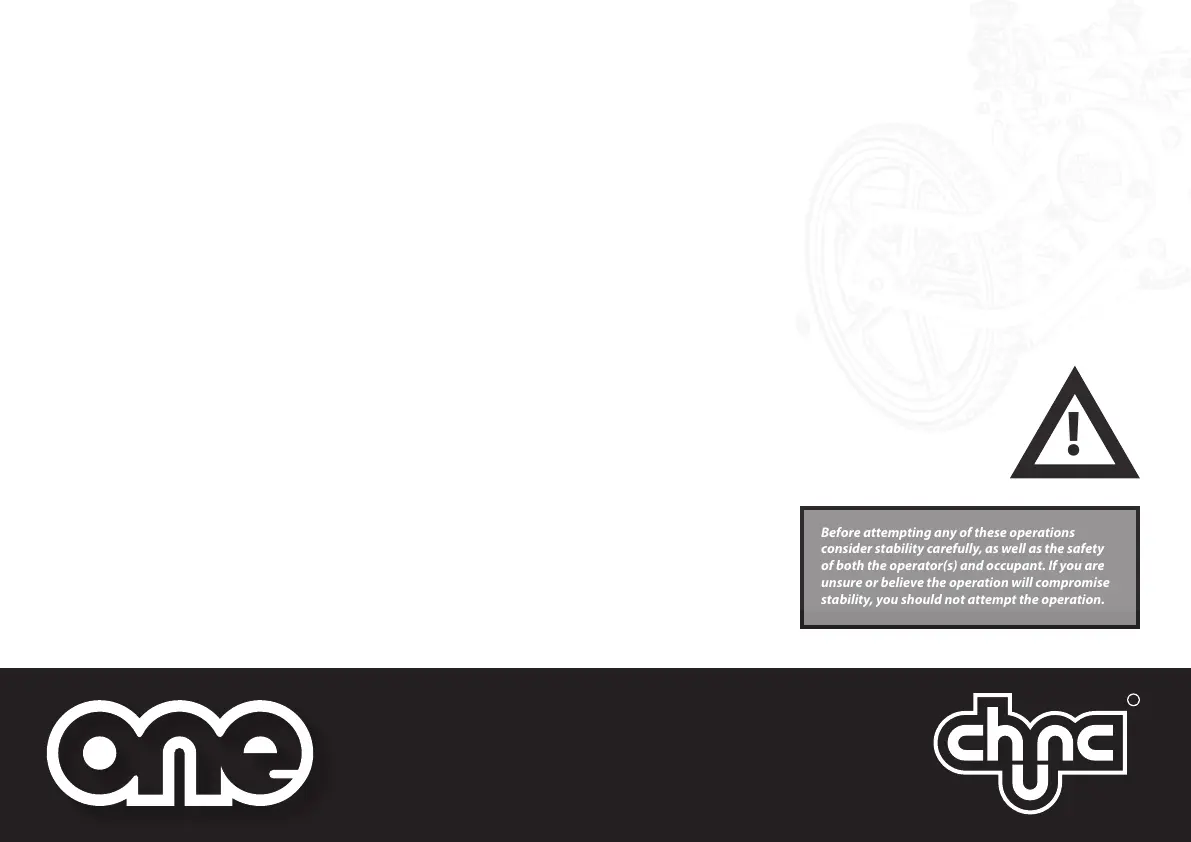 pull up and over the step(s). A second person must stand below the chair, holding it through the chassis mouldings,
