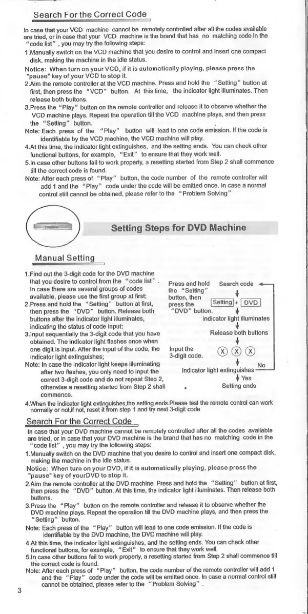 Chunghop RM-88E - DVD Setup Guide; Manual DVD Code Entry; Automatic DVD Code Search
