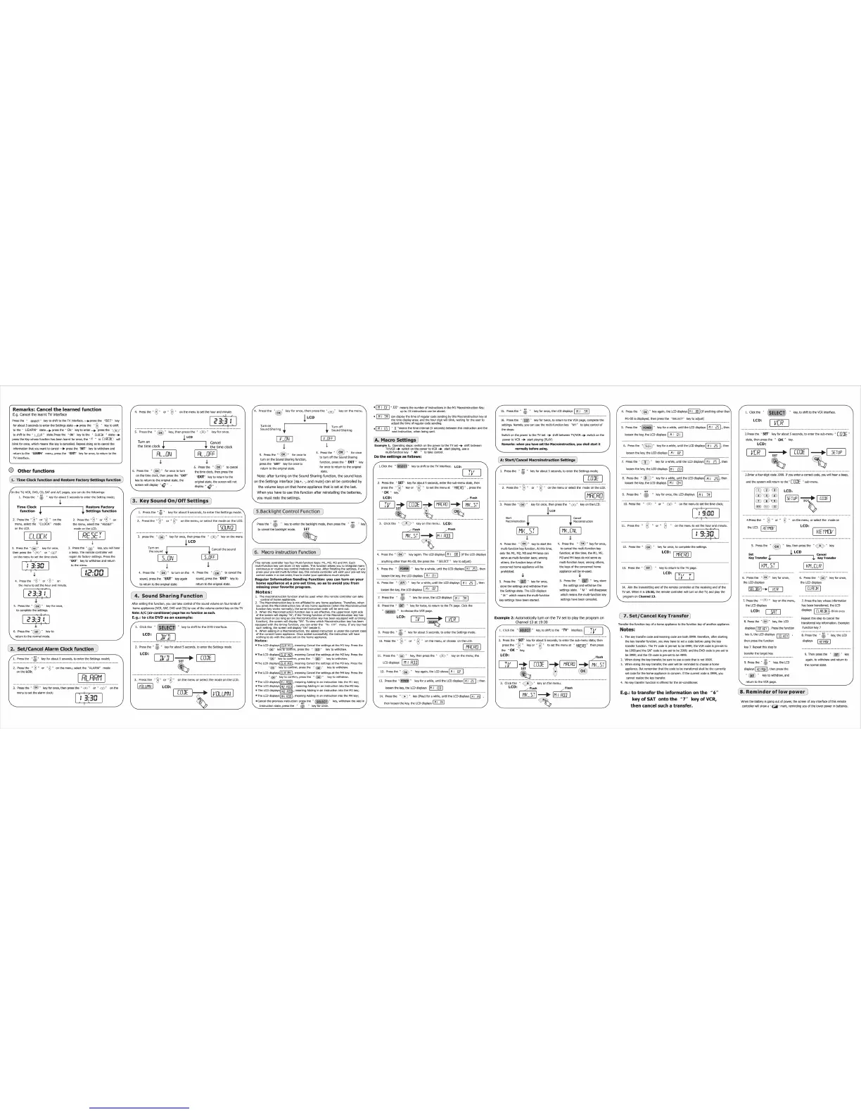 Chunghop RM-L968E - Other Remote Controller Functions; Function Management and System Settings; Additional Features and Tools