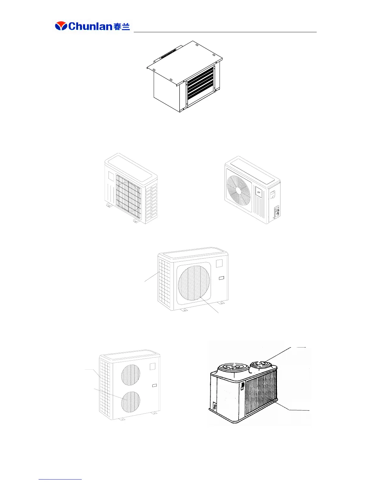 FR(D)95, FR(D)125/S, FR95-C, FR125-C/S, FR(D)100-B outdoor unit outline