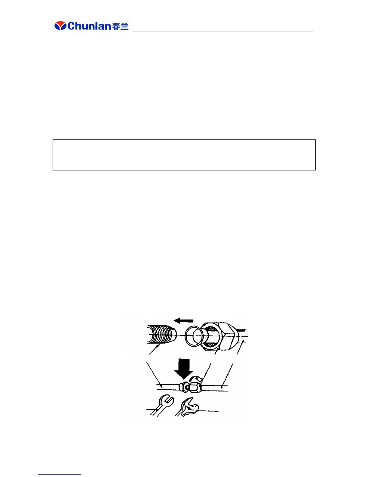 (1) Unscrew nuts on shutoff (or ball) valves on indoor unit pipeline and outdoor unit;