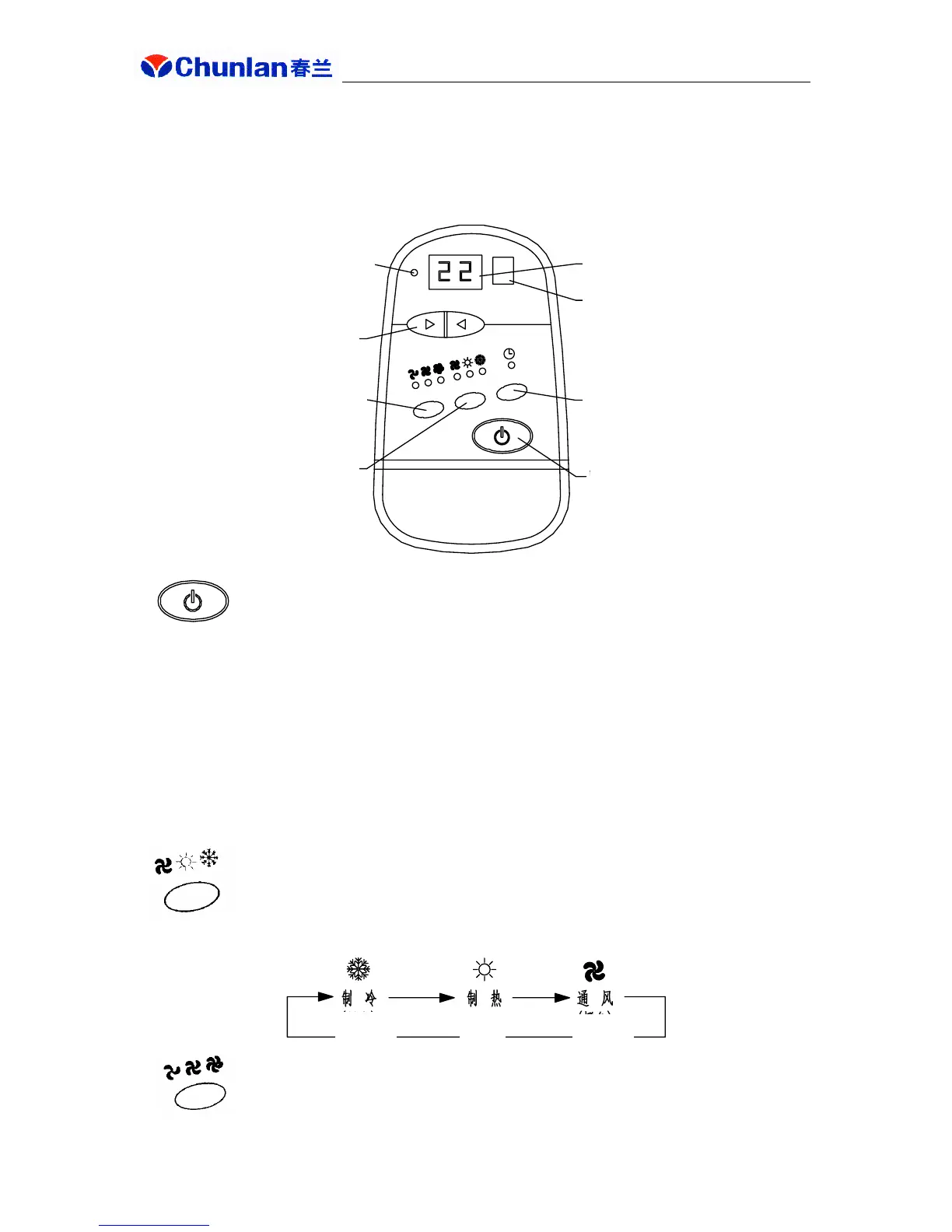 temperature is set at 22℃. At this time, use functional key to select operating status. With unit in