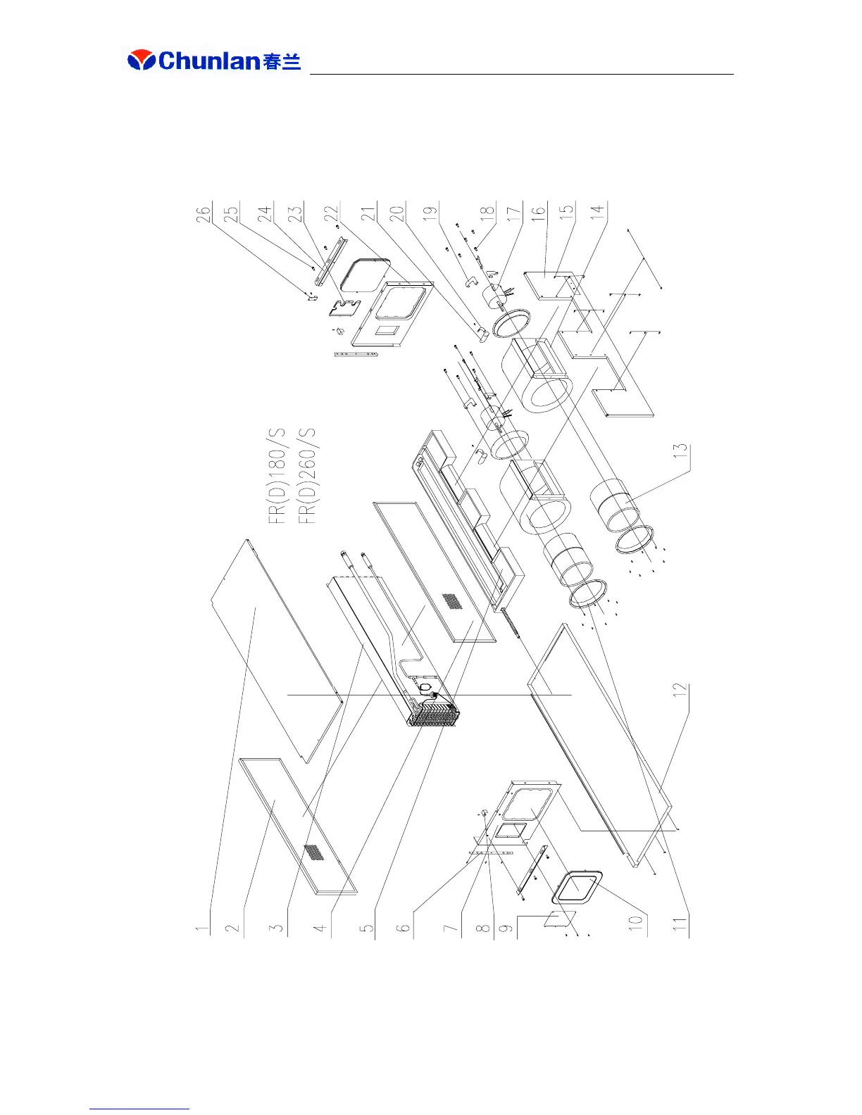 CHUNLAN FRD50-B - IX. Exploded view and dismantling sequence of indoor unit of FR(D)180;S and FR(D)260;S