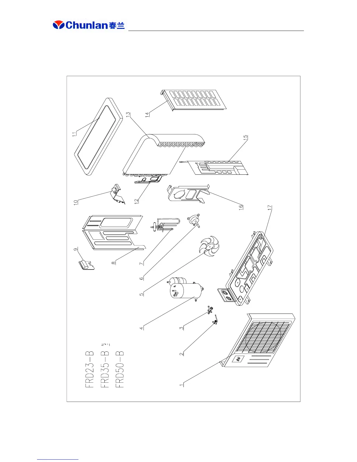 CHUNLAN FRD50-B - II. Exploded view and dismantling sequence for outdoor unit of FRD23-B, FRD35-B & FRD50-B