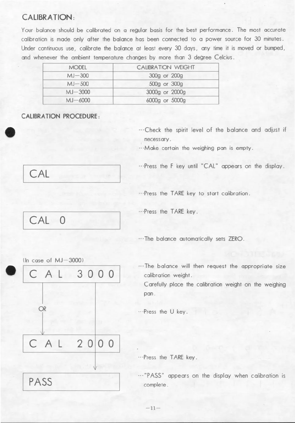 ... " PASS" appears on the display when calibration is