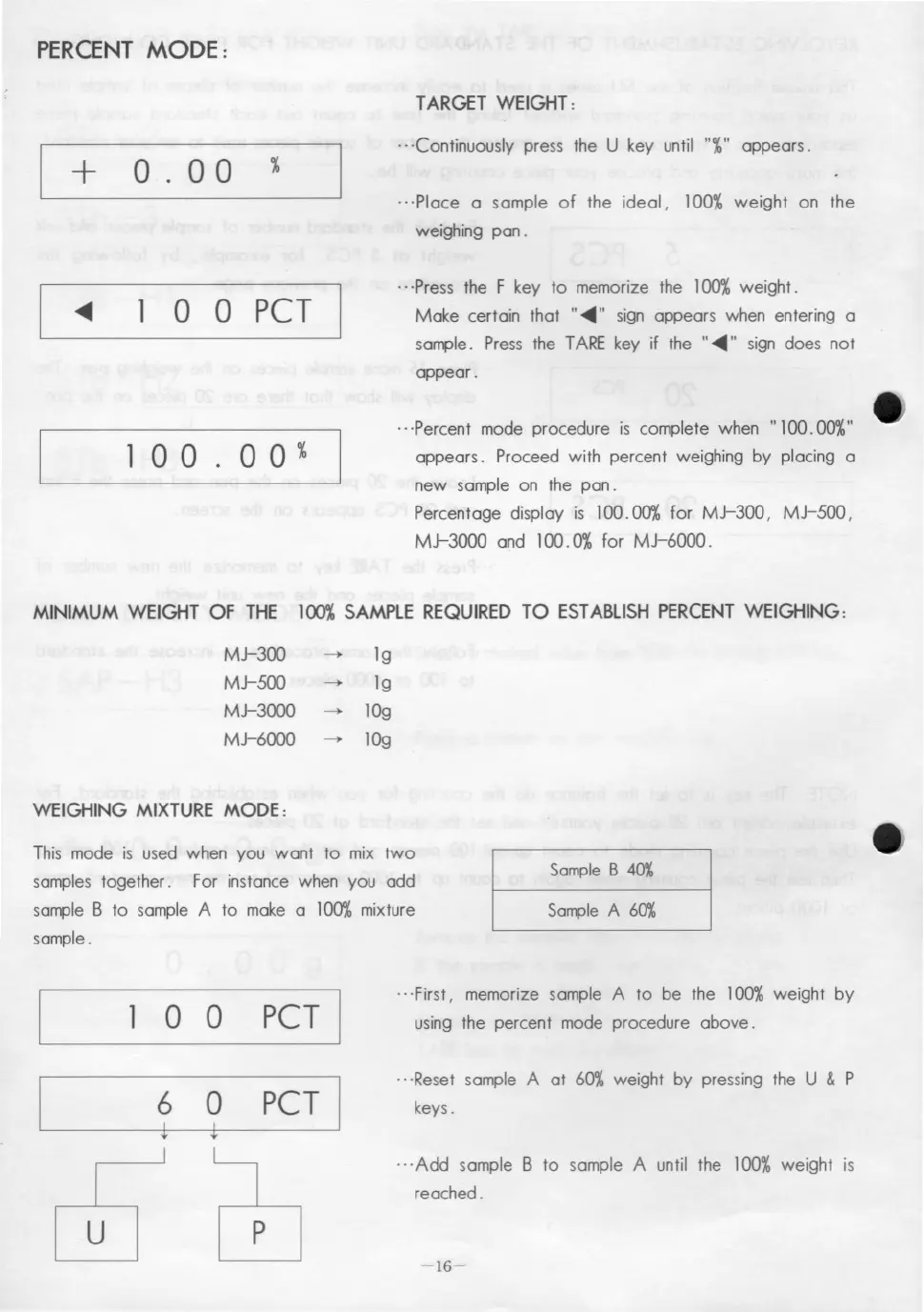 ..·Reset sample A at 60% weight by pressing the U & P