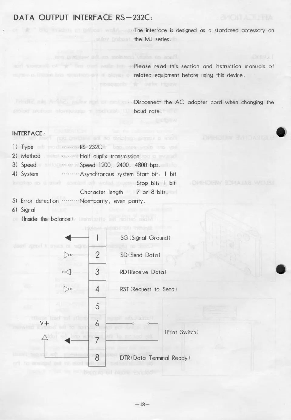 DA TA OUTPUT INTERFACE RS- 232C :