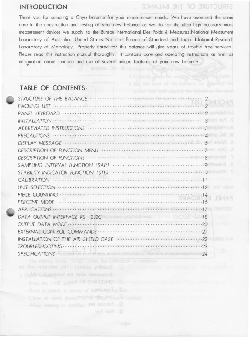 Thank you for selecting a Chyo balance for your measurement needs. We have exercised the same